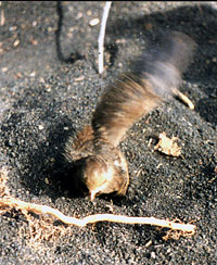 The chick does not have the usual sharp point to its beak with which to crack the shell but must needs dig it's way out of both the shell and the sand with it's feet. |